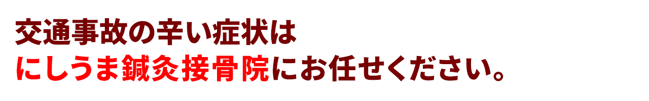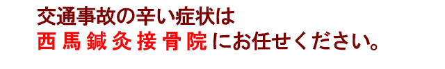 交通事故治療とは、交通事故が原因で発生した痛み(むち打ち、腰痛、手足の障害、痛み、だるさ、不快感 等)の治療のことで、主に自賠責保険による治療のことをいいます。