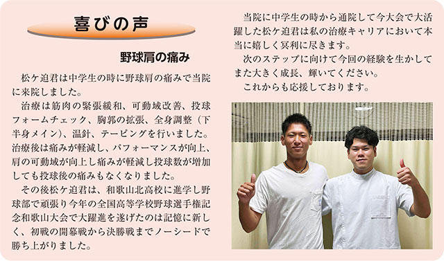 | ○肩こり ○腰痛 ○関節痛 ○五十肩 ○肉離れ ○スポーツ外傷 ○矯正○リハビリ 【各種保険取扱】 【交通事故治療】 【鍼灸治療】 和歌山市北島 にしうま鍼灸接骨院 和歌山本店 HOME / 初めての方へ / 治療の流れ / 料金・メニュー / 交通事故治療 / 交通事故に遭ったら / はり・きゅう治療 /野球肩・肘 / 顎関節症 / めまい治療 / ガン緩和ケア鍼灸治療 / ばね指鍼灸治療 / 院内紹介・治療機器 / 院長紹介 / スタッフ紹介 / 店舗案内・地図 / Q&A / ニュースレター / サイトマップ / リンク |